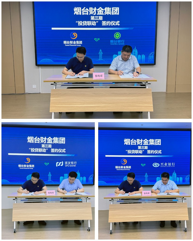 分享結(jié)束后,集團(tuán)總經(jīng)理李輝分別與煙臺(tái)銀行黨委書(shū)記曾勇、興業(yè)銀行煙臺(tái)分行行長(zhǎng)張秀鋒、浦發(fā)銀行煙臺(tái)分行副行長(zhǎng)田冰簽訂了戰(zhàn)略合作協(xié)議。