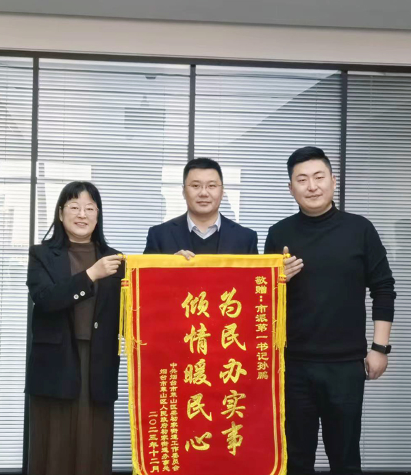 1月10日,萊山區(qū)初家街道黨工委副書記、辦事處主任張志遠(yuǎn)和界牌村黨支部書記、村委會主任黃世會一行將印有“扶志扶貧共舉 全心全力為民”“駐村幫扶辦實事 情系群眾解民憂”字樣的錦旗送到煙臺財金集團(tuán),對集團(tuán)和市派第一書記孫鵬對界牌村給予的大力支持和真情幫扶表示衷心感謝。集團(tuán)黨委副書記、工會主席連瑞渝,紀(jì)委書記房瑞田、黨群工作部負(fù)責(zé)人安少帥及市派第一書記孫鵬接受錦旗,并與包村單位深入開展交流座談。